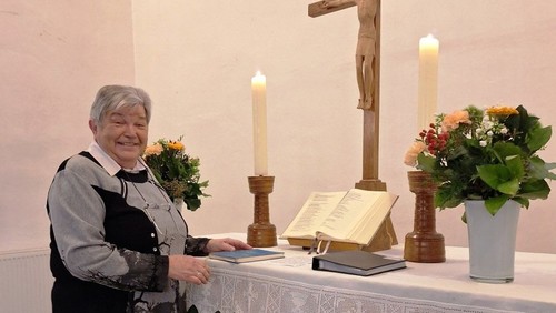 Im November 1977 hatte sie ihren Dienst begonnen. Im März 2011 ging sie in den Altersruhestand. Aber schon Ende 2013 kehrte sie als „Küsterin im Nebenjob“ (offiziell Hausmeisterin) an die Auferstehungskirche zurück.
