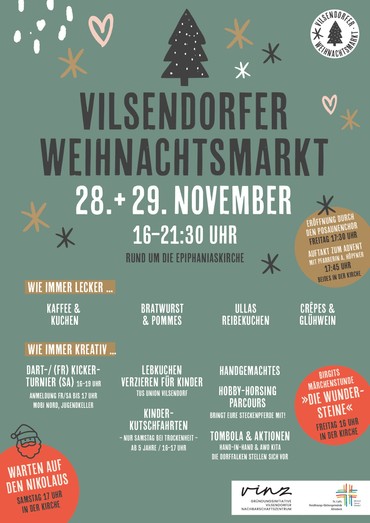 Den Vilsendorfer Weihnachtsmarkt gibt es jetzt schon zum 25. Mal seit 1999: zweimal unterbrochen durch Corona und 2022 putzmunter wiederauferstanden! Großartig, liebe Gäste, Schlenderer und Verweilerinnen, liebe Helferinnen und Helfer in und um Kirche und Gemeindehaus!