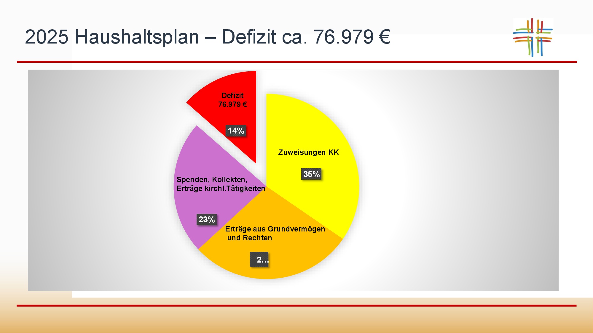 Unter den drei wichtigsten Punkten – Personal, Finanzen und Gebäude – enthielt der erste gleich eine erfreuliche Nachricht: Presbyter Jürgen Ennen informierte darüber, dass der seit mehr als zwei Jahren angestrebte Übergang vom rein theologisch ausgerichteten Pfarrteam zum Interprofessionellen Pastoralteam kurz vor dem Abschluss steht. Bekanntlich war die Pfarrstelle von Pfr. Dr. Kersting in jeweils eine halbe Stelle für Gemeindepädagogik und -management umgewandelt worden, um dem Mangel an Pfarrerinnen und Pfarrern zu begegnen und verschiedene administrative Leitungsaufgaben gleichberechtigt auf andere Berufsgruppen zu verteilen. Leider hatte die erste Gemeindemanagerin Ires Dyszack 2024 schon nach vier Monaten ihre halbe Stelle verlassen. Die Ursachen dafür lagen, so Ennen ausdrücklich, nicht auf Gemeindeebene.
