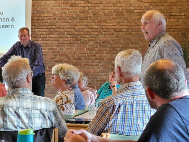 Die Stühle reichten kaum aus: Im vollbesetzten Gemeindehaussaal in Jöllenbeck stieß die erste Gemeindeversammlung seit Januar 2024 auf reges Interesse. Max Ackermann (Jöllenbeck) führte auf Vorschlag aus der Gemeinde als Versammlungsleiter durch die Tagesordnung.