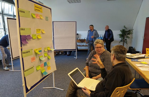 Zunächst wurde die neue Gemeinde von einem Bevollmächtigtenausschuss geleitet, der im März 2020 von einem ordentlich gewählten Presbyterium abgelöst wurde. Mit diesem neuen Presbyterium verbunden war von Anfang an die Aufgabe, eine Konzeption der Ev.-Luth. Versöhnungskirchengemeinde Jöllenbeck zu entwickeln. Im Ausschuss für Gemeindeaufbau und Konzeption haben wir uns dazu zunächst einen Fahrplan gegeben für den entsprechenden Prozess. Verbunden damit waren feste Vorgaben und freie Räume, Zeitdruck und Reifen lassen, erhebliche Zwänge und unendliche Träume. Sachfragen bewegten uns und Glaubensfragen ließen uns nicht los. Wir wendeten Methoden an und nutzten die Kaffeepausen für diesen Prozess.