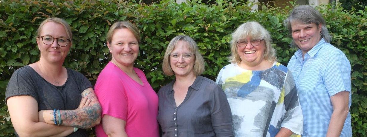 Von links: Anika Wehmhöner (Ev. Familienzentrum Hand in Hand), Walburga Kiel (Ev. Kindertageseinrichtung Volkening), Simone Gnegel (Ev. Familienzentrum Matthias-Claudius); Sabine Petry (Ev. Kindertageseinrichtung Hattenhorstfeld, Leiterin bis 31.10.2025) und Annemarie Luschnat (Ev. Kindertageseinrichtung Horstheide)
